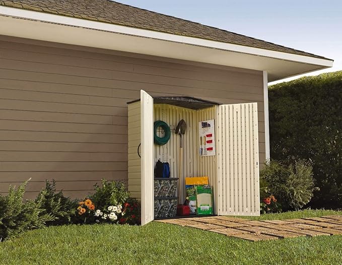 - SENSIBLE STORAGE: Preserves essential yard or patio space with smaller footprint. Safely stores lawn care equipment such as push mowers, long garden tools, brooms, ladders and more.