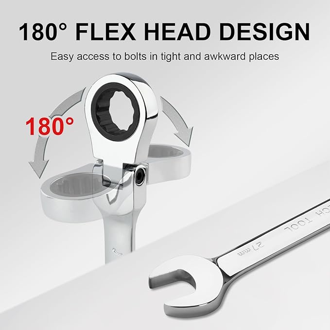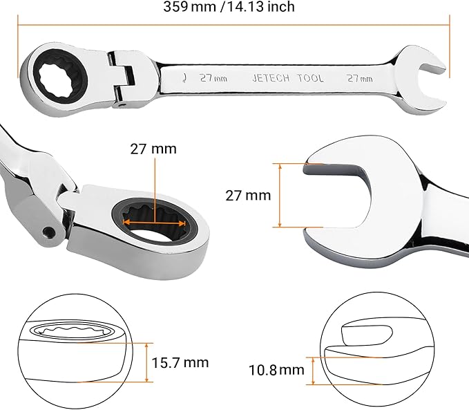 Jetech 27mm Ratchet Wrench Flex Head: Box End Wrench 12Pt| Metric Ratcheting Combination Chrome Vanadium,Forged, Extra Durability