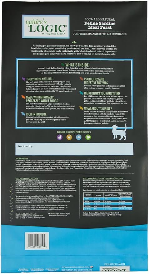 Nature's Logic Sardine Dry Cat Food (1 Pack), 15.4 lb