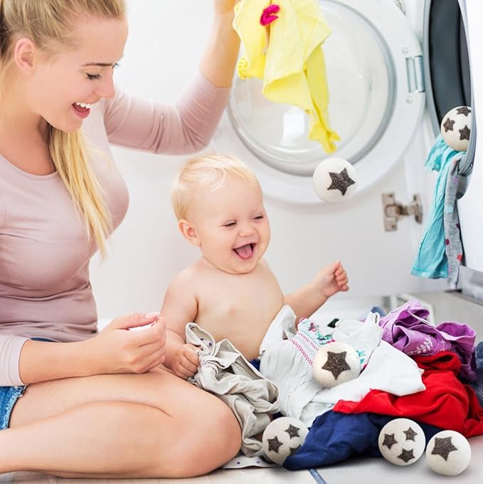 - Wool Dryer Balls for Laundry: Reusable wool balls naturally soften clothes, reduce wrinkles and static, and help cut drying time.