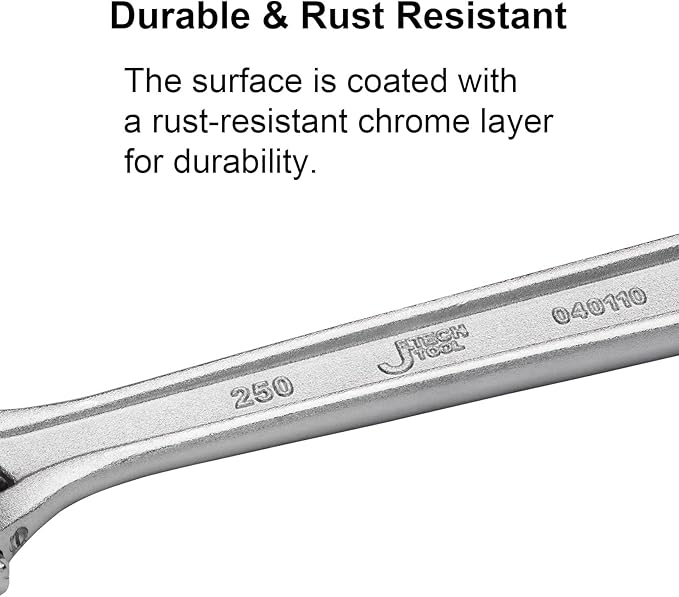 Jetech 10-Inch Adjustable Wrench - Professional Heavy Duty Chrome Vanadium Steel Shifter Spanner with Inch/Metric Scale Wide Caliber Opening