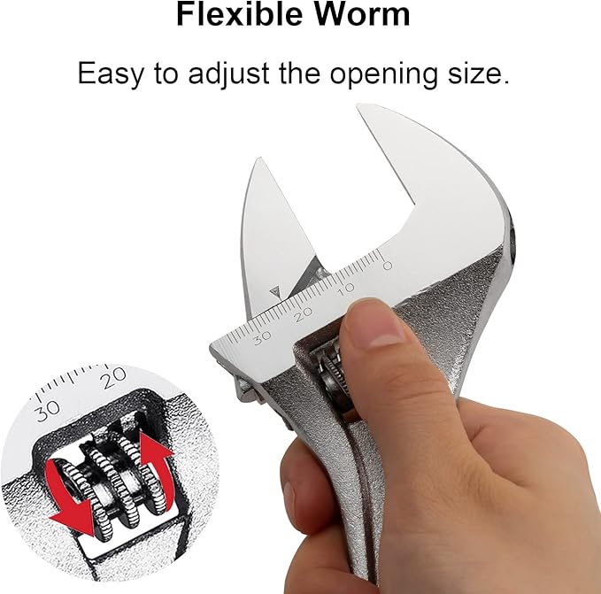 - LASER PRINTED SCALE - Easily measure nut/bolt size at the jaw of the wrench.