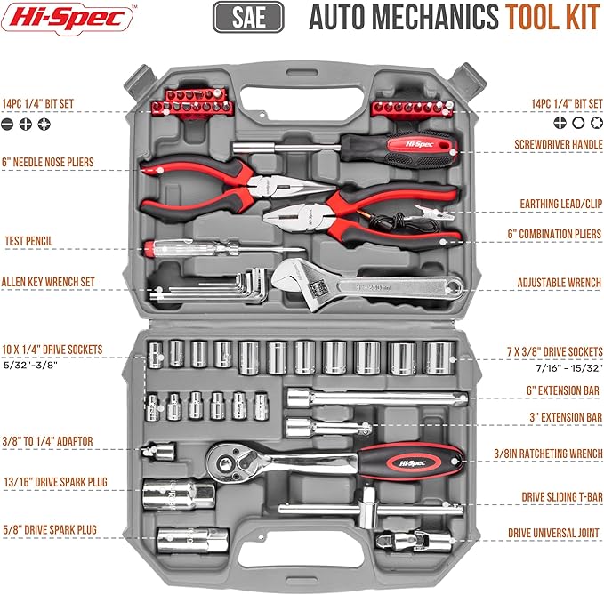 - SAE All-in-One Repair Solution: Handle a variety of car, motorcycle, and RV repairs; includes all essential tools for both routine maintenance and emergency fixes