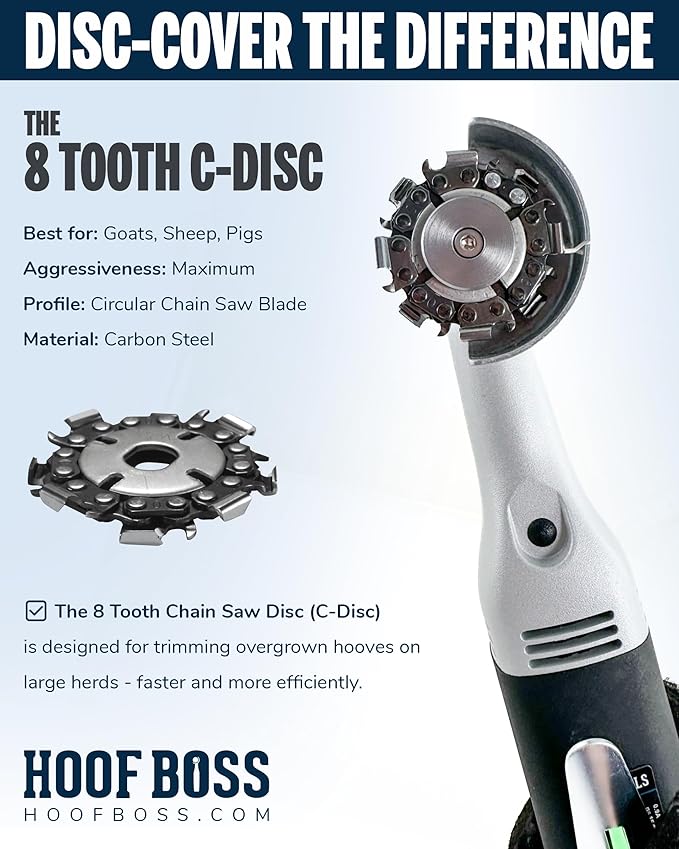 - Used by Goat Owners for regular maintenance hoof trimming – Different size animals requiring different trimming disc designs - Grooming show animals