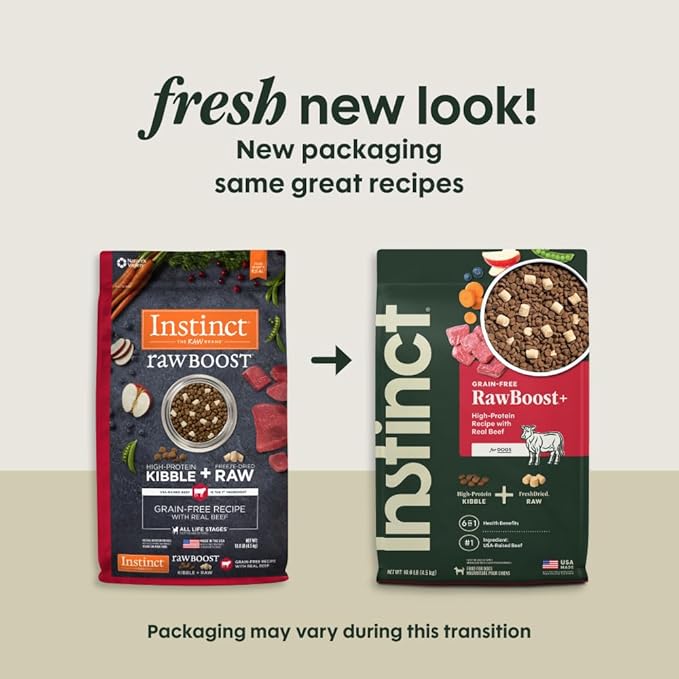 Instinct Raw Boost, Natural Dry Dog Food with Freeze Dried Pieces, High Protein, Grain Free Recipe - Real Beef, 10 lb. Bag