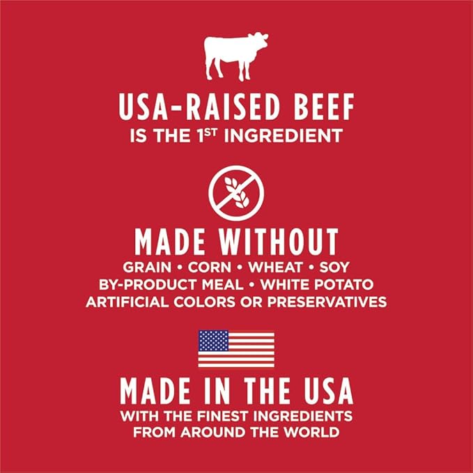 - NATURAL INGREDIENTS: Features all natural, minimally processed bites of real beef and free from grain, potato, corn, wheat, soy, and artificial preservatives