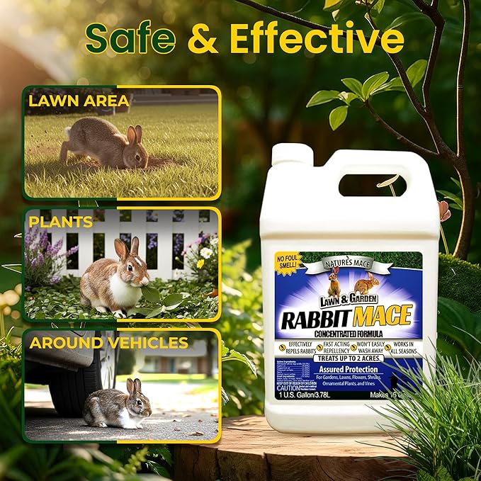 Nature’s MACE Rabbit Mace, Rabbit Repellent for Outdoors, 1 Gallon Concentrate, Covers 2 Acres, Rabbit Deterrent Spray for Lawn, Yard, Garden, Landscape, Safe to Use Around People, Pets, & Plants