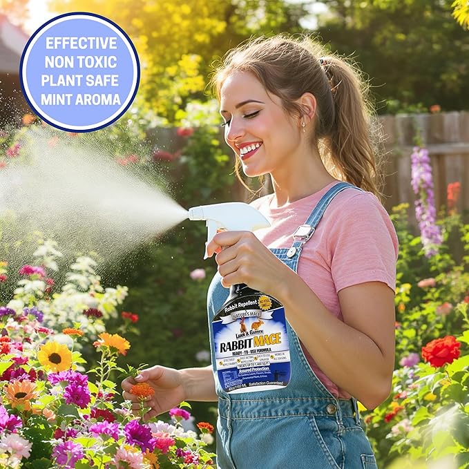 - RABBIT REPELLENT OUTDOOR: Our Rabbit MACE formula was deigned to have more active ingredients than other rabbit repellents. Rabbit MACE repels rabbits, protects plants, and prevents destructive browsing. It is made from plant-based ingredients and is safe for family, pets, and plants, when used as directed. Our 3-pronged approach incorporates fear, scent, and taste-based technology into one ultimate repellent, engineered for preventing unwanted rabbit browsing.