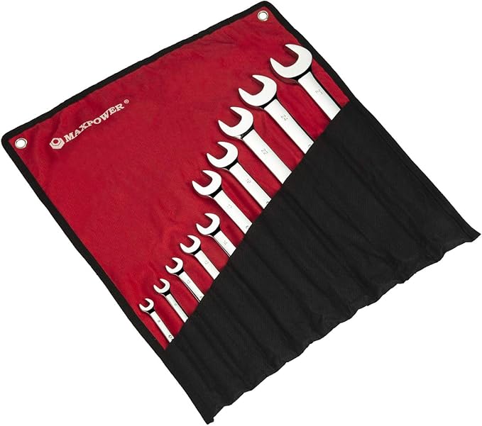 MAXPOWER 10PCS Metric Combination Wrench Set, Professional Open and Box End Spanners with Mirror Finish, Made with Forged and Heat-Treated Cr-V Steel, 12-Point Design, Size Includes 8mm - 27mm