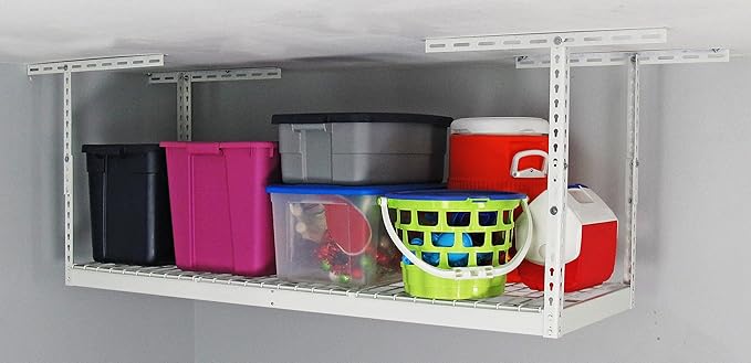 - CUSTOMIZABLE CEILING DROP-LENGTH: Create the perfect storage solution with our adjustable ranges of 12"-21", 18"-33", and 24"-45" drop-length. Tailor the height to fit your garage space and maximize storage capacity.