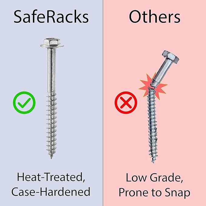 - SECURE CONNECTION: Rest assured with our Grade 8 Case-Hardened Lag bolts, offering the safest and most secure connection to your ceiling. Say goodbye to worries about your storage rack coming loose or compromising safety.