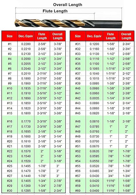 - Sizes Range: wire gauge sizes 1# (0.228 inch) to 60# (0.040 inch); All drill dimensional & tolerances conform to ASME/ANSI B94.11M drill standards or USCTI - United States Cutting Tool Institute (formerly MCTI)