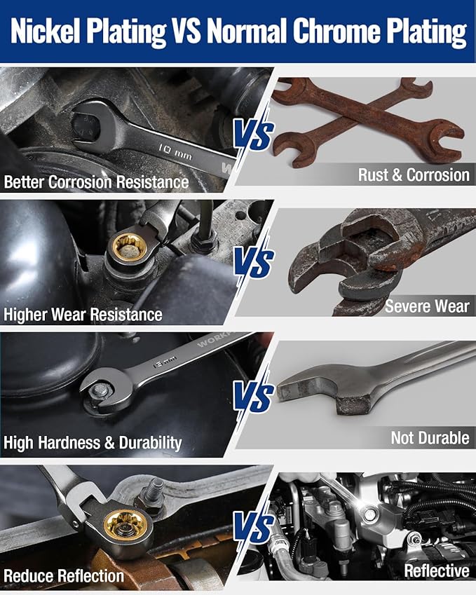 - Our ratchet wrenches are made from high-quality heat-treated CR-V alloy and nickel-plated for durability