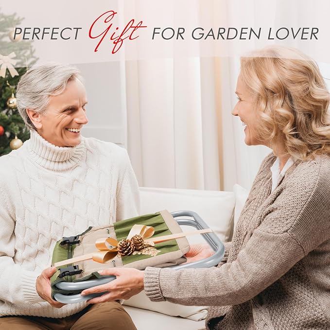 INNO STAGE 10 Piece Gardening Hand Tools Set with Garden Storage Tote Bag and Seat-Best Garden Tools Kit Organizer Valentine's Day Gifts