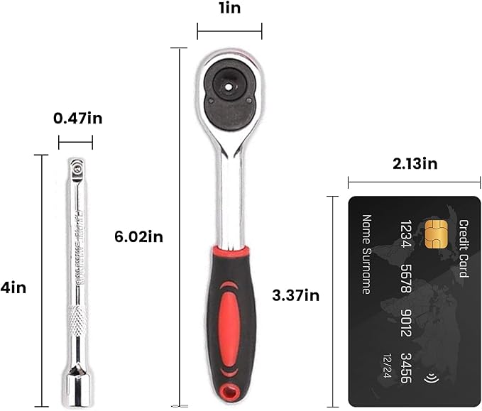 - 1/4" PROFESSIONAL RATCHET HANDLE - Ergonomic easy-grip ratcheting handle could be quickly released, make you comfortably reverse the switch and let the product exceptional durability.