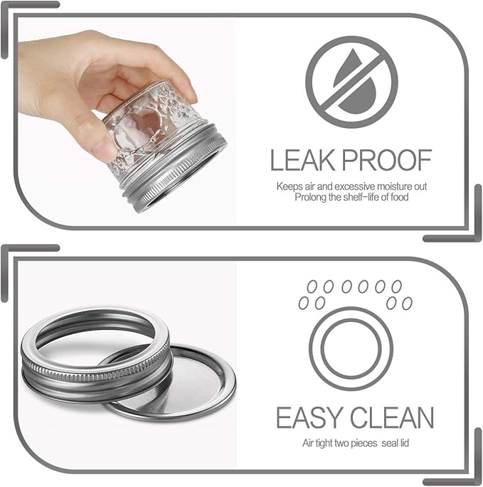 - FOOD GRADE:Each mason jar is made from food grade materials. Great for food storage.Suitable for use in preserving and canning. Safe for the refrigerator and the freezer