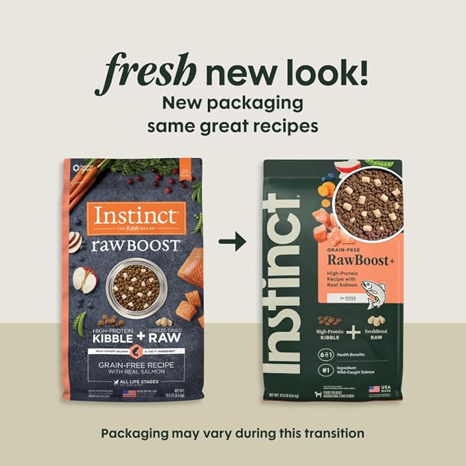 Instinct Raw Boost, Natural Dry Dog Food with Freeze Dried Pieces, High Protein, Grain Free Recipe - Real Salmon, 19 lb. Bag