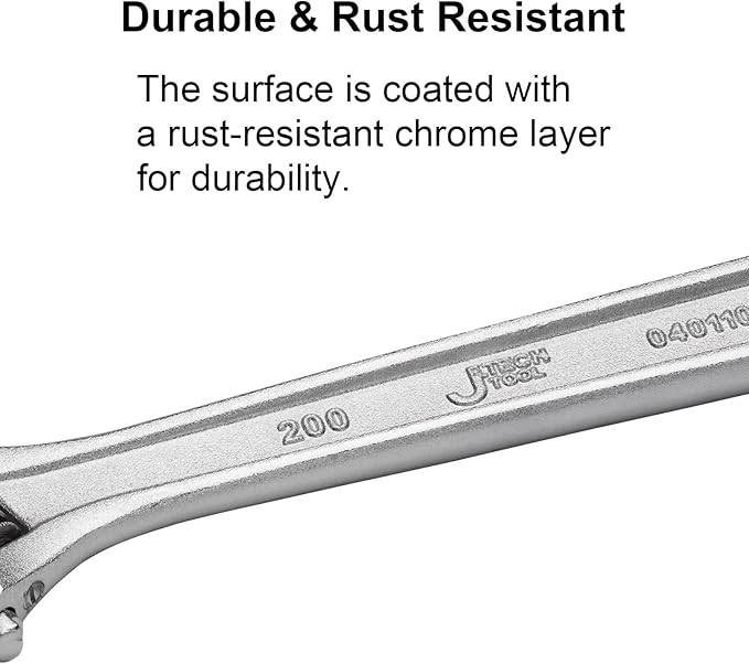 Jetech 8 Inch Adjustable Wrench - Professional Heavy Duty Chrome Vanadium Steel Shifter Spanner with Wide Caliber Opening