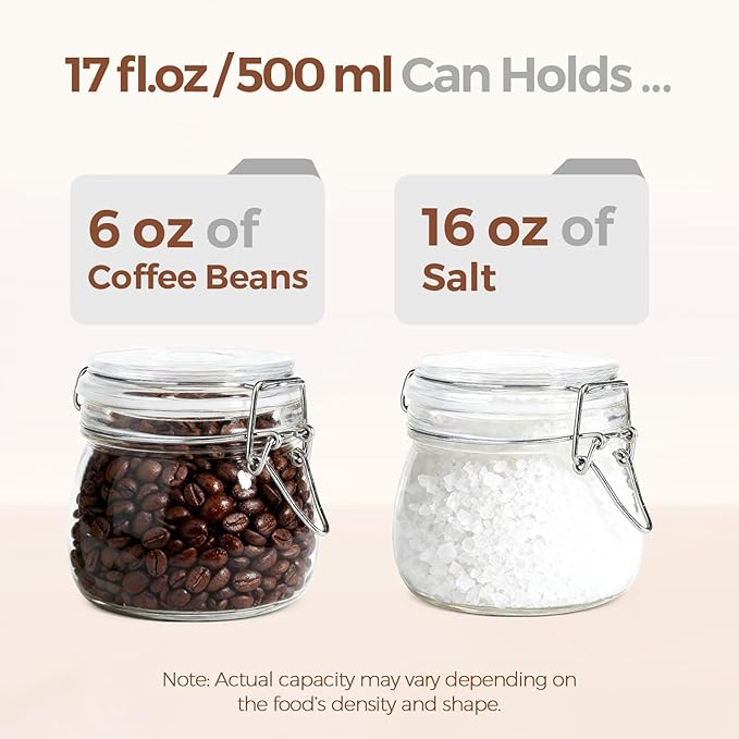 ComSaf Airtight Glass Jars with Lids 17oz Small Food Storage Container Set of 6 - Airtight Canister with Clear Preserving Seal Wire Clip Fastening for Kitchen Canning Pickling Mason jars