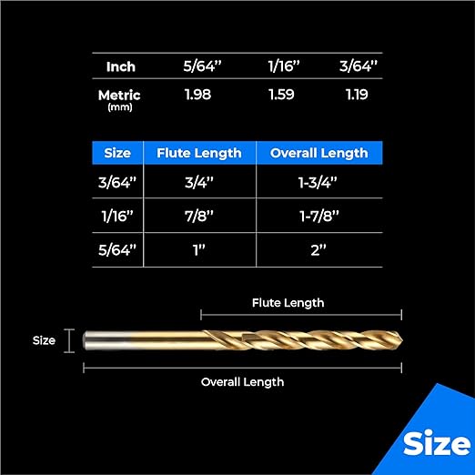 - 【FULLY GROUND PROCESS & 135° SPLIT POINT】Fully ground spiral groove design clears particles quickly, decreases friction and heat for a faster and cooler drilling performance. 135° Split Point with straight shank prevents walking and makes drilling precise. No center punch is needed.