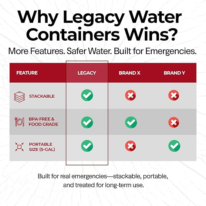 - At Legacy Food Storage, our focus is to provide families and individuals with the highest quality food and water storage available online. We look forward to delivering the peace of mind and comfort you'll receive knowing that you are prepared, regardless of what the future holds.