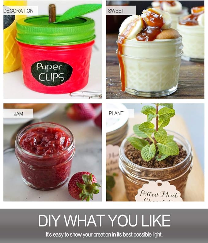 - EXCELLENCE IN QUALITY:Thick 4oz VERONES mason jars with food-safe, corrosion resistant lids - material is certified safety standards