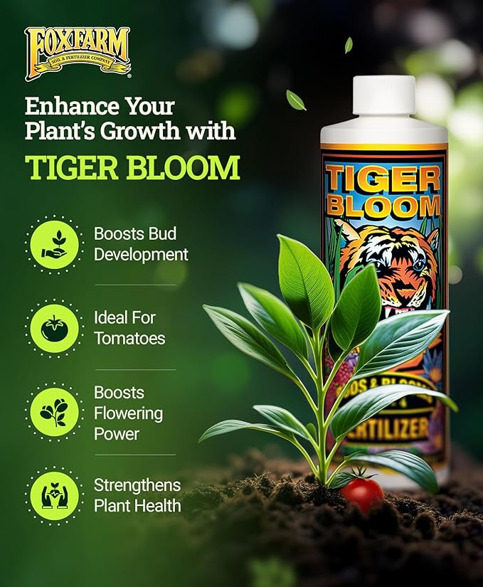 - POWERS UP BUDS WITH TIGER BLOOM: Activate the strength of fruit and bloom booster plant food for flowers when buds begin to form. This phosphorus fertilizer fosters vigorous growth & supports abundant flowering, ensuring your plants yield a stunning harvest