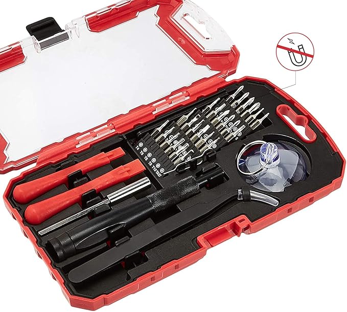 Amazon Basics Electronics Screwdriver Set, 32-Piece Tool Kit for Repair and Maintenance, Red