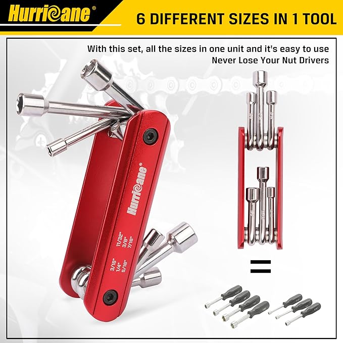HURRICANE 6 in 1 Folding Nut Driver Set SAE, Hex Nut Driver Set, Cr-V Steel Shank. Premium Portable Premium Aluminum Handle. Easy to Carry Out, 3/16, 1/4, 5/16, 11/32, 3/8, 7/16 inch