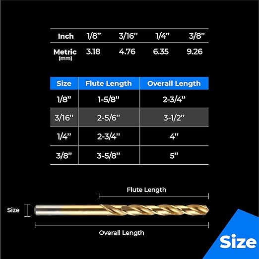 - 【FULLY GROUND PROCESS & 135° SPLIT POINT】Fully ground spiral groove design clears particles quickly, decreases friction and heat for a faster and cooler drilling performance. 135° Split Point with straight shank prevents walking and makes drilling precise. No center punch is needed.