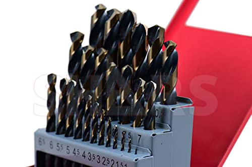 Shars 1mm to 13mm by 0.5mm 135° 25 Pcs HSS Heavy Duty Black & Gold Finish Jobber Drill Set 404-2936 P