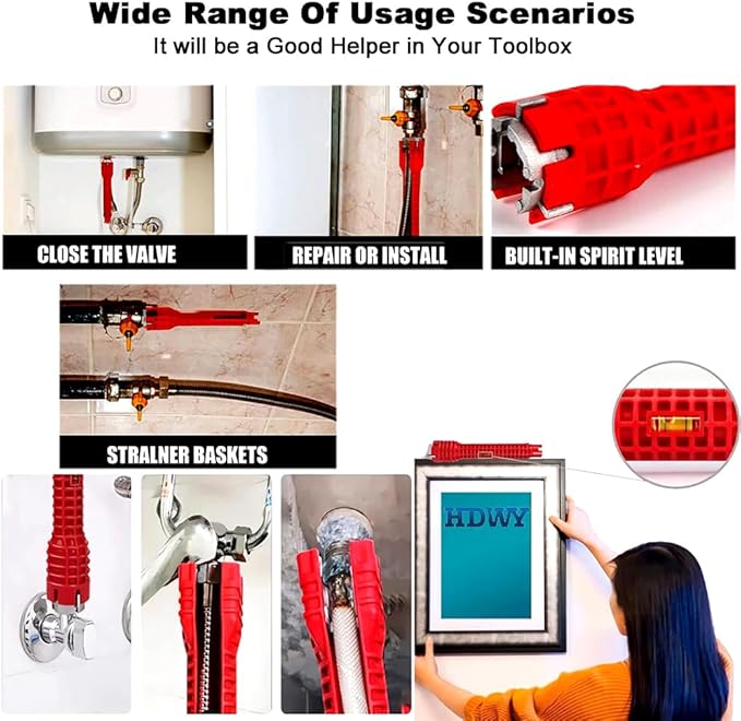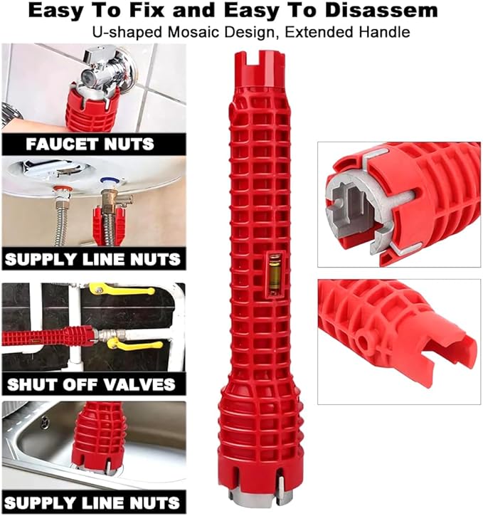 - Multifunctional All-in-One Design: This faucet wrench combines commonly used sizes and types of adapters into a single, compact tool. It is engineered to fit a wide range of standard and specialized nuts for faucets, sink drains, showerheads, and other plumbing fixtures, eliminating the need for multiple separate wrenches