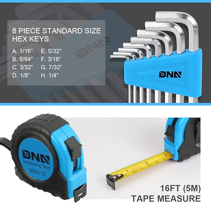 - Included Components : 8Piece Standard Size Hex Keys - 1/16”, 5/64”, 3/32”, 1/8”, 5/32”, 3/16, 7/32”, 1/4”1 X Bit Driver (Screw Driver)Slotted Bits - 1/8", 5/32”, 3/16”, 1/4”Phillips - #1, #2, #3, PZ1Magnetic Bit Holder4 Precision Screw Drivers1 X Utility Knife1 X 8oz 6” Claw Hammer1 X 16ft (5M) Tape Measure1 X 8.5” Utility Shears1 X 6" Slip Jiont Pliers 8Piece Standard Size Hex Keys - 1/16”, 5/64”, 3/32”, 1/8”, 5/32”, 3/16, 7/32”, 1/4”1 X Bit Driver (Screw Driver)Slotted Bits - 1/8", 5/32”, 3/16”, 1/4”Phillips - #1, #2, #3, PZ1Magnetic Bit Holder4… See more