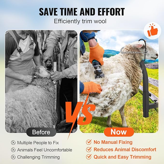 - ✔ 🐐 **Durable Iron Construction**: Engineered for endurance during prolonged shearing and trimming sessions, our goat stand boasts a sturdy black powder-coated iron build, perfect for handling larger animals like breeding sheep and goats.