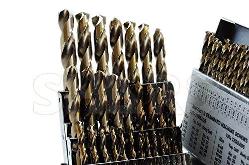 Shars 1/16-1/2", A-Z, #1-#60 115 pcs Cobalt Jobber Drill Set with Huot Index Box 135° Point Angle 404-2203C L