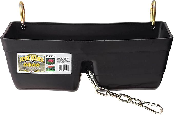 Little Giant FF16BLACK 9 Quart Heavy Duty Plastic Feed Trough Bucket Fence Feeder with Clips for Livestock & Pets, Black (2 Pack)