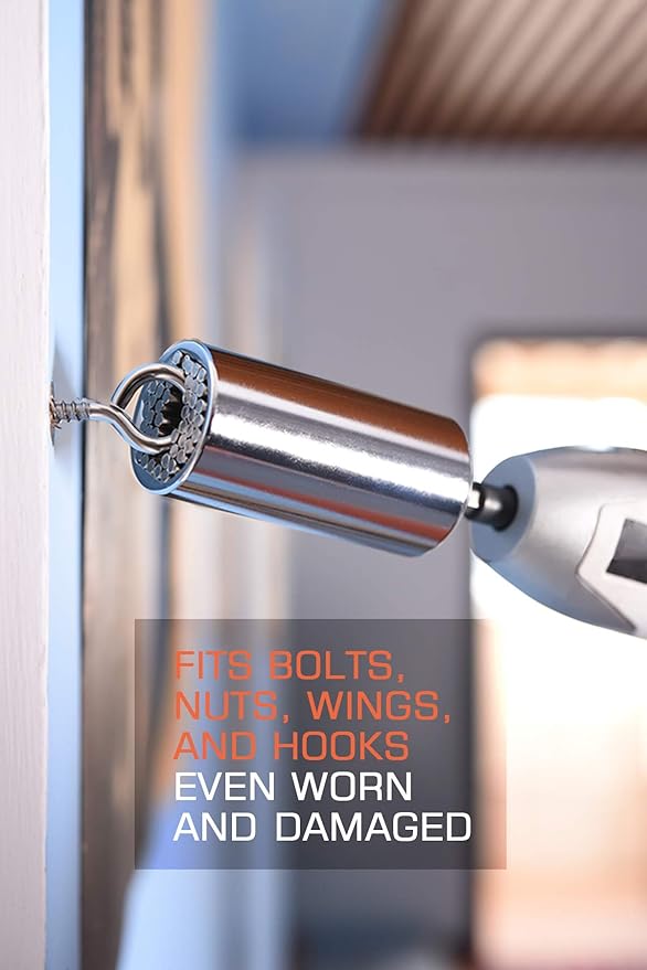 - FLEXIBLE - Mutilfunctional socket can graso the hex nut, screw eye, hook, tension screw and bolt head. Works on a power drill (adapter not included).