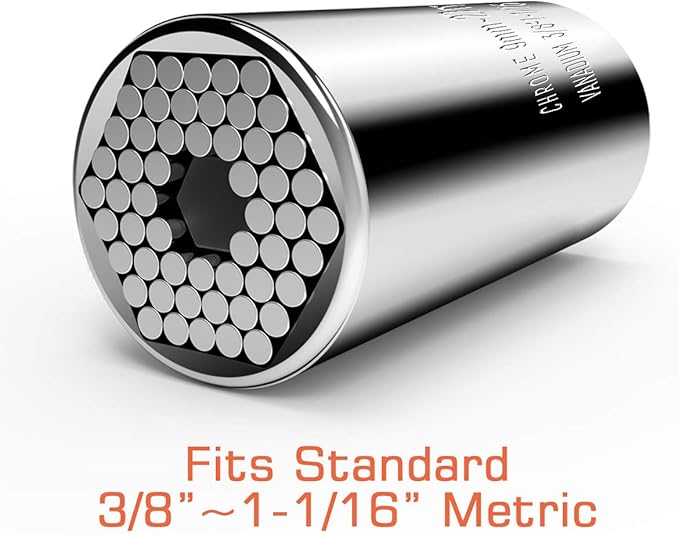 - ADVANCED DESIGN - Universal socket can self-adjust to any size from standard 3/8" to 1-1/16" and metric 9mm to 27mm.