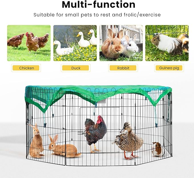 - 𝐋𝐀𝐑𝐆𝐄 𝐒𝐏𝐀𝐂𝐄 𝐈𝐍 𝐃𝐈𝐅𝐅𝐄𝐑𝐄𝐍𝐓 𝐒𝐇𝐀𝐏𝐄𝐒: These iron panels can be set up in various shapes of pet fences, such as square, rectangle and octangle, which can provide 16 square feet enclosed area (1.5 m²); This coop can accommodate animals ranging from chickens to ducks and rabbits to cats, giving your pets ample space to play while keeping it safely confined