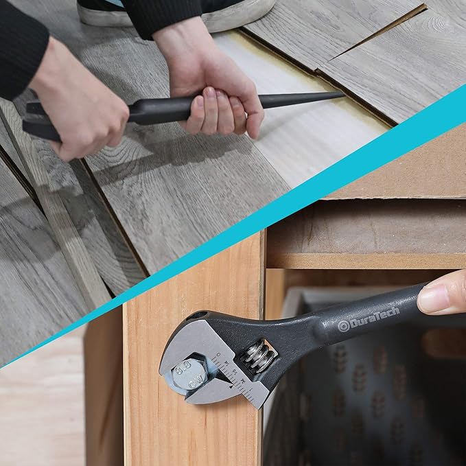 DURATECH 3-Piece Adjustable Construction Spud Wrench Set, 8-inch, 10-inch, 12-inch, Black Oxide Finish, CR-V Steel, SAE and Metric Scale Marked, Alignment Holes and Tail Crowbar Features