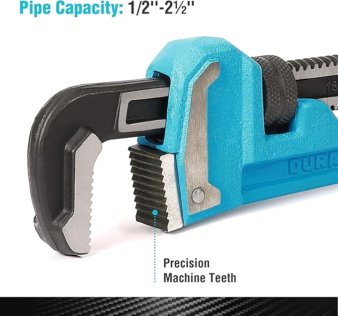 DURATECH 18-Inch Heavy Duty Pipe Wrench, Adjustable Plumbing Wrench, Malleable Cast Iron Handle, Exceed GGG standard