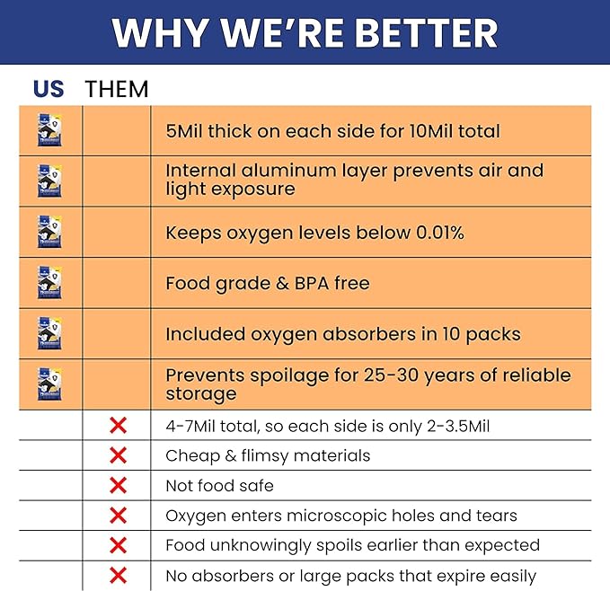 Wallaby 75 Count 1-Gallon Mylar Bags with 400cc Oxygen Absorbers, 10 Mil Total Thickness Long-Term Food Storage Pouches, 10x14 Heat-Sealable Airtight Packaging - Matte Black