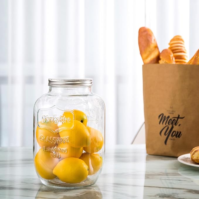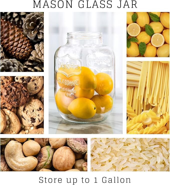 Diamond Star 1 Gallons Mason Jar with Brushed Tin Lid, Large Glass Wide Mouth Canning Food Storage Containers for Kitchen Canning Cereal, Pasta, Sugar, Beans, Spice, Preserves, Dog Treat