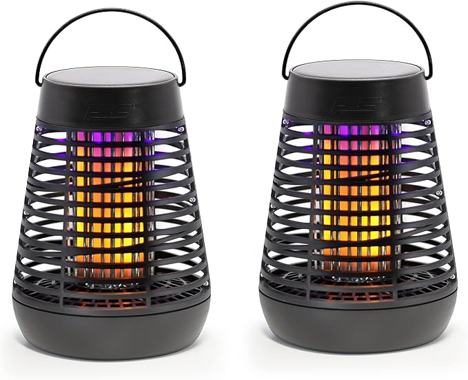 - FLICKERING FLAME EFFECT LED and BLUE UV LED: Achieve the same flame effect without the hazard of an open flame with the flickering flame effect LED powered by the sun, the blue UV LED helps attract unwanted flying insects to keep your outdoor experience clear of unwanted pests