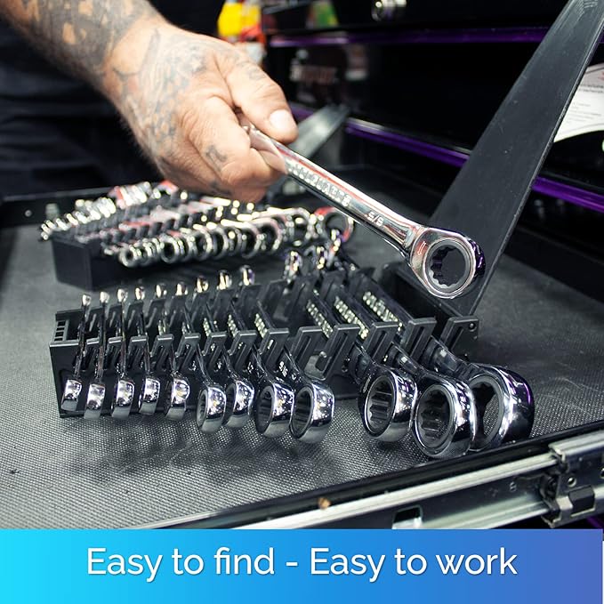 - Comes packed in wrench rack organizer for easy and quick access.