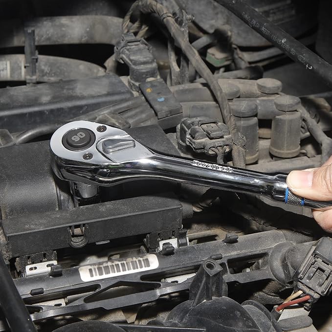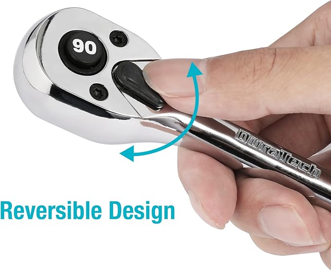 DURATECH 1/2-Inch Drive Ratchet, 90-Tooth Quick-release Ratchet Wrench, Reversible, Chrome Alloy Made, Full Polished, Stocking Stuffers for Men Women Gifts for Men Gifts for Women Gifts for Dad