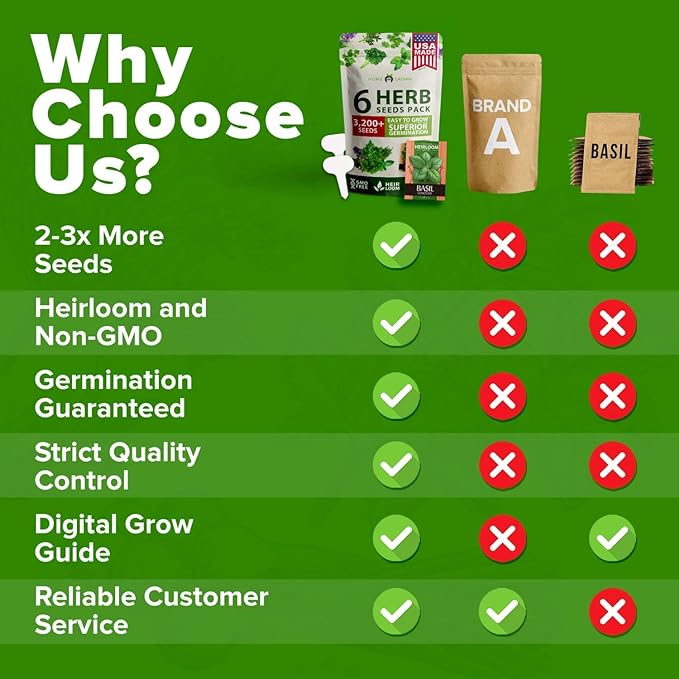 - PREMIUM QUALITY SEEDS: Non-GMO heirloom herb seeds with exceptional germination rates; Each packet contains carefully selected organic herb seeds that sprout quickly and grow vigorously; Maintain freshness with resealable storage packets