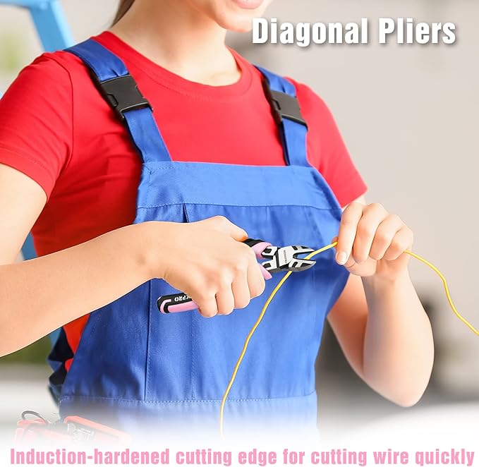 WORKPRO 4-Piece Pliers Set, Premium CR-V Construction Pliers Tool Sets Including Long Nose, Diagonal Cutting, Groove Joint and Slip Joint Pliers - Pink Ribbon