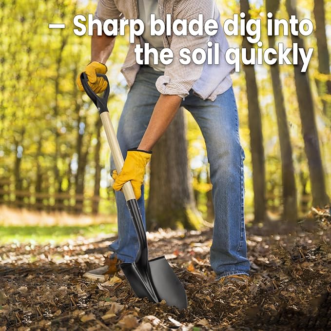 - LONG SERVICE LIFE—The shovel head is made of cold-rolled steel, and the hardness is improved by high temperature quenching. It will not bend or deform when it comes into contact with hard stones during use. The pure wood handle is more durable and environmentally friendly.