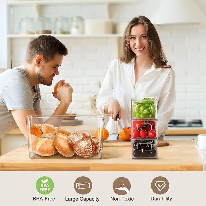 Clear Storage Bins 8 Pack for Fridge,4 Large Plastic Pantry Organizer Bins and 4 Small Stackable Storage Containers for Home Edit, Kitchen, Freezer, Bathroom, Under Bed, Vanity Drawers